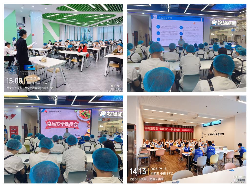 9月15日至19日,立异港分析办理办事核心环绕食物平安、反餐饮华侈,正在各食堂集中开展以“尚德守法 共享食安”为从题的“食物平安宣传周”系列勾当。开展普遍带动。9月15日,立异港分析办理办事核心组织召开立异港食堂食物平安工做带动会。勾当现场,核心从任巩滨做带动讲话,食堂办理人员及工做人员参会,食堂司理代表、厨师代表对食堂食物平安工做做讲话,各餐饮公司签定《立异港食堂秋季食物平安义务书》。